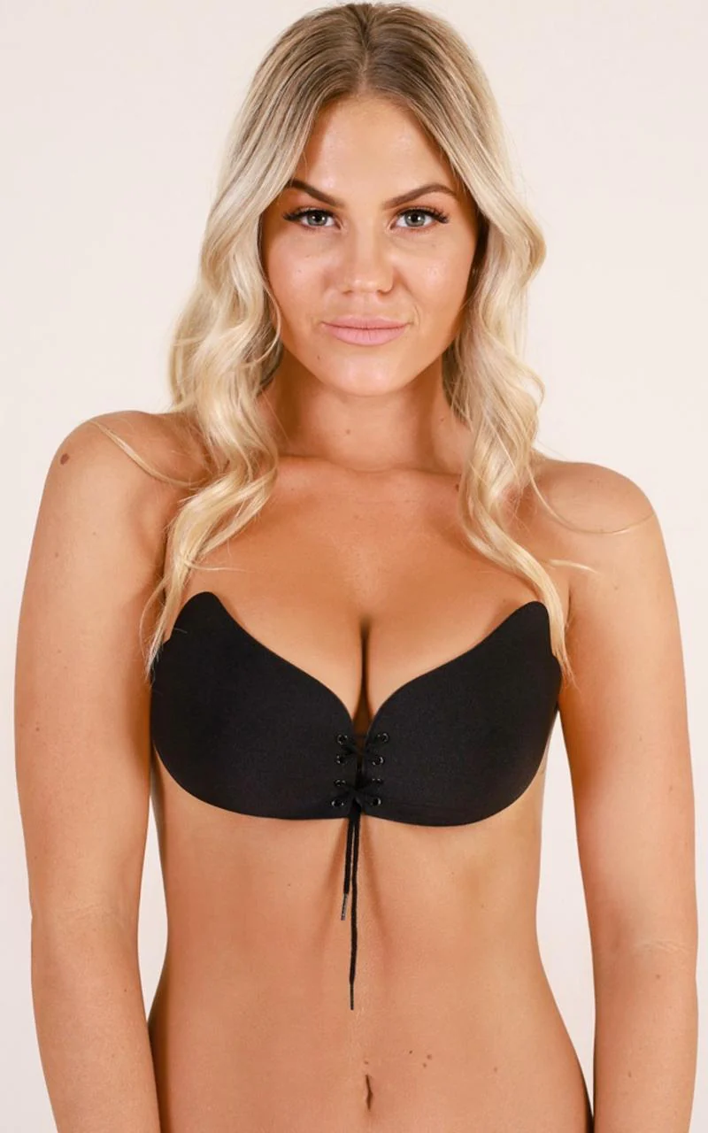 Push Up Stick On Bra with Laces in Black
